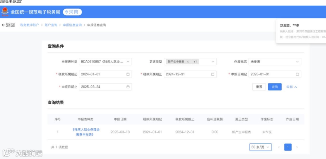 查看申报结果: