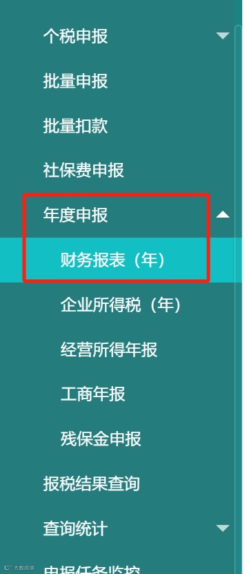 1.登录慧代账系统,在左侧菜单栏中选择【报税管理】→【年度申报】→【财务报表】。