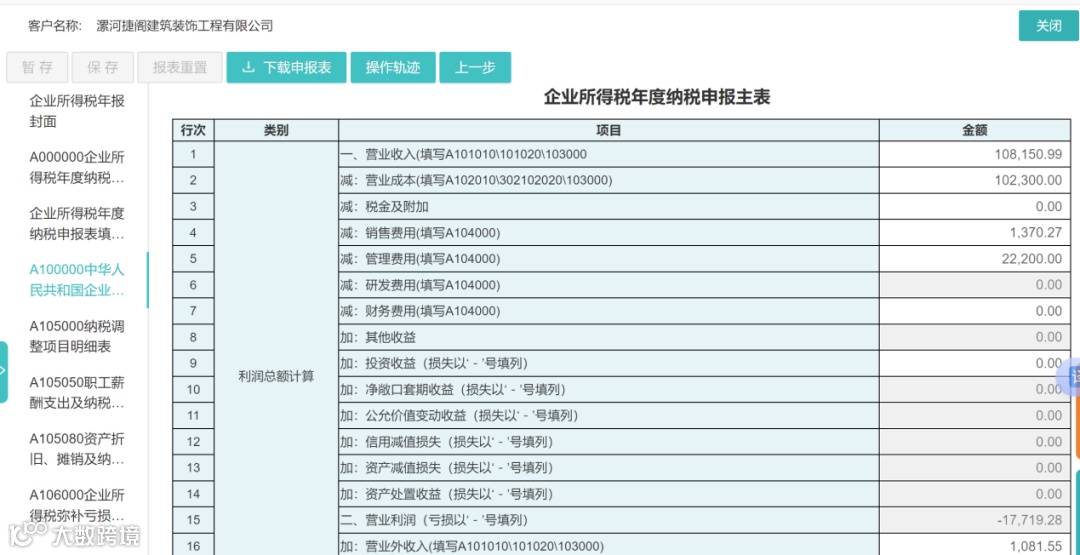 2.系统将根据企业所得税相关法规,自动提取账务模块中的全年账务数据,生成企业所得税年度申报表;
