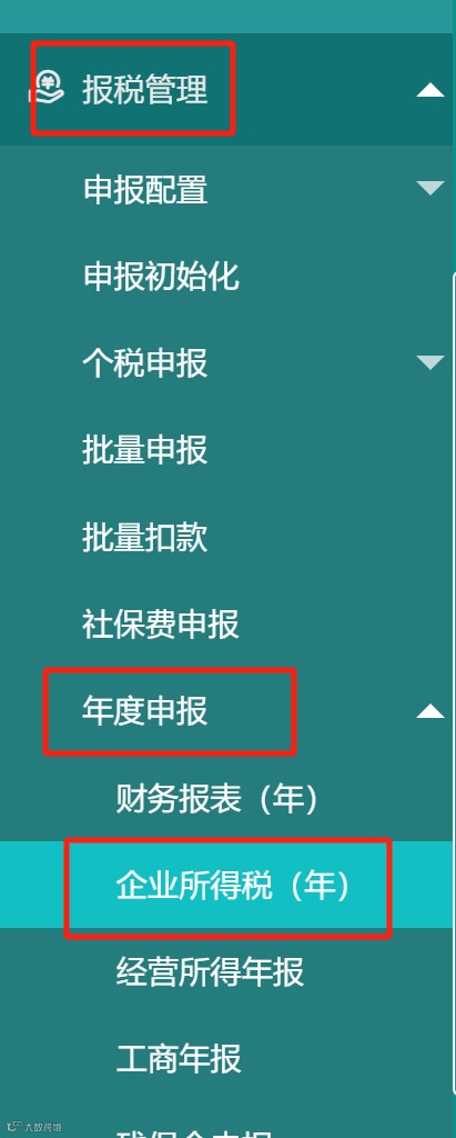 在左侧菜单栏中选择【报税管理】→【年度申报】→【企业所得税】。