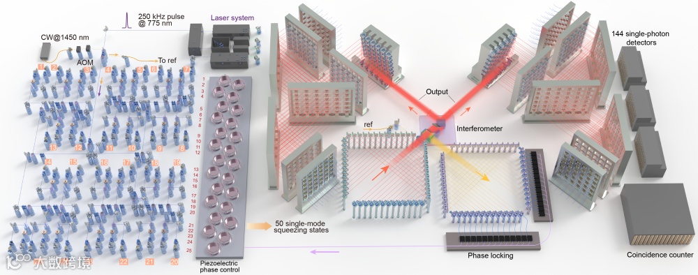 “我们主要有三大突破,首先显著提高了量子光源的产率、品质和收集效率,将光源关键指标从63%提升到92%。其次,将多光子量子干涉线路从100维度增加到144维度,操纵的光子数从76个增加到113个。第三,新增了可编程功能。”研究团队成员、中科大教授陆朝阳说。