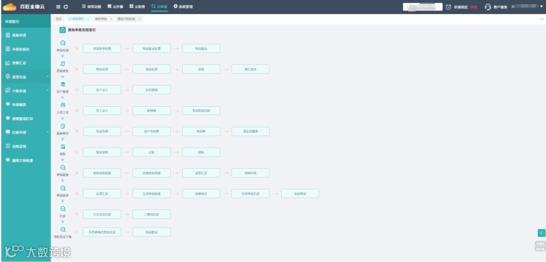 对于没有专职会计的企业,我们提供申报指引,帮助用户规范轻松地完成记账、报税。