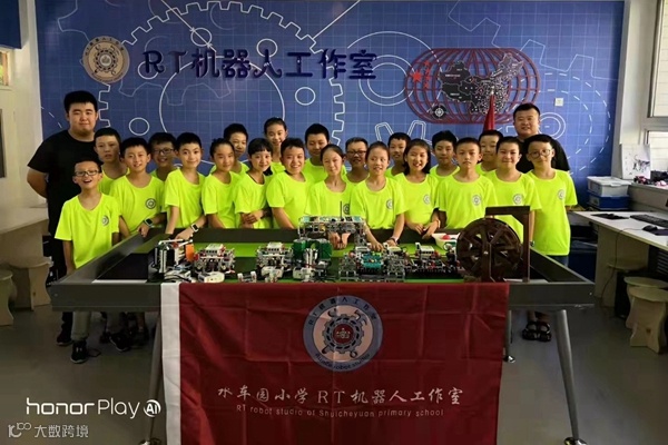 水车园小学RT机器人工作室成立于2012年,成员主要来自三至六年级学生,他们利用少年宫、社团课及课余时间学习编程语言,基础搭建以及智能机器人制作运行的基本原理,为学生打造一个集科技知识启蒙教育、创新思维拓展训练及创造能力开发培养为一体的创新实践平台、不断培养和提升学生的创新能力、动手能力、团队协作能力及独立分析解决问题的能力。