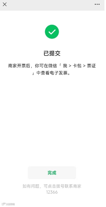 3.开票成功,发票推送至微信卡包
