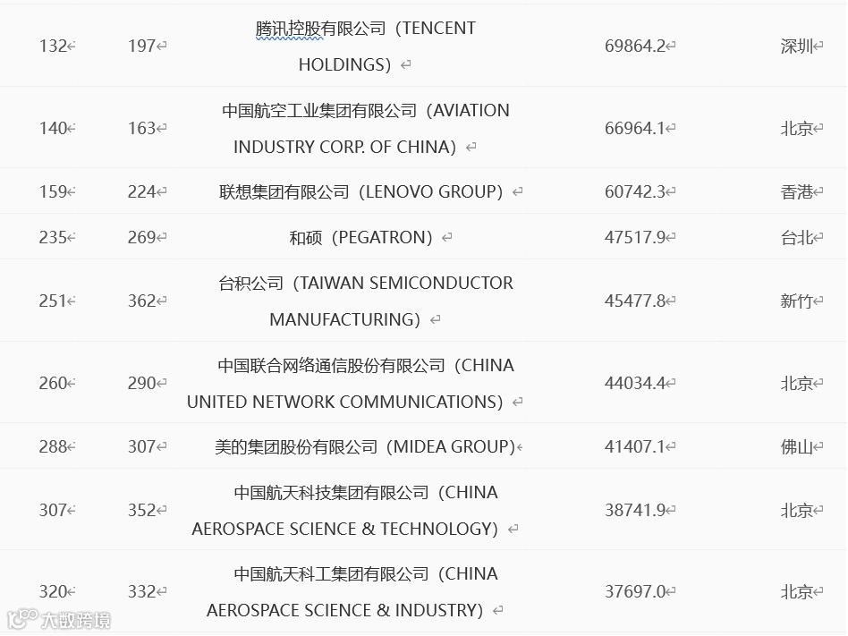 家电信运营商,以及航天、新材料等领域的佼佼者。值得关注的是,这些企业中拔得头筹的并非阿里、腾讯等明星公司,而是富士康的母公司、代工巨头鸿海精密,排名第