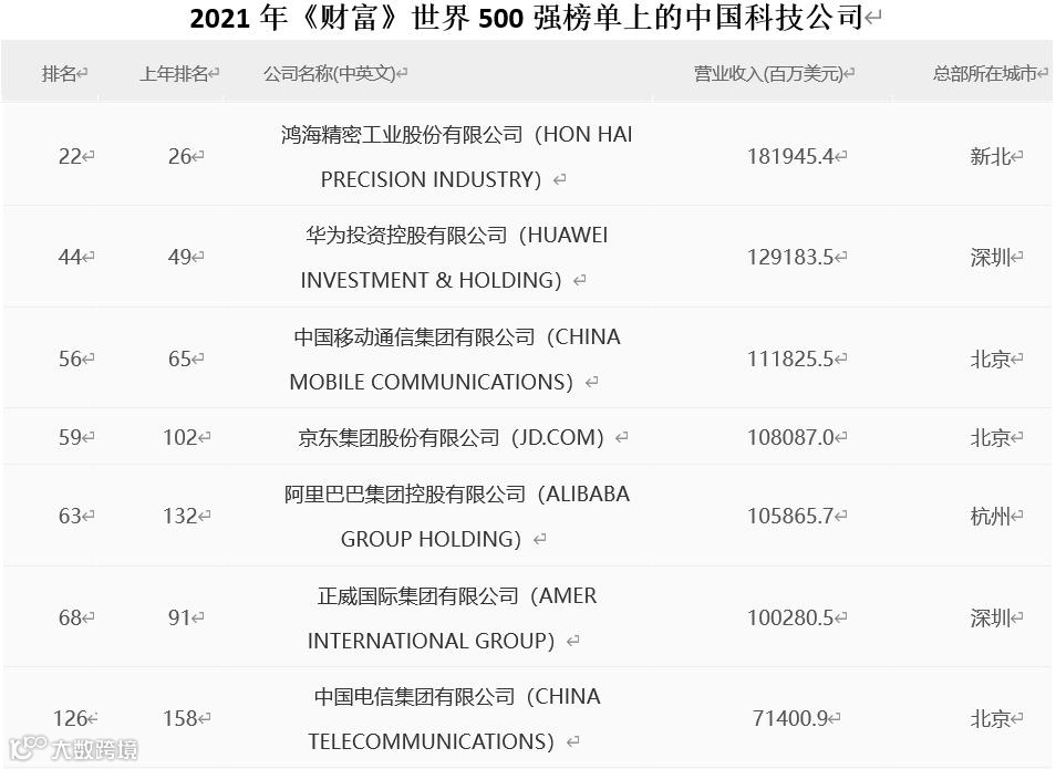 七家国内头部科技互联网企业上榜