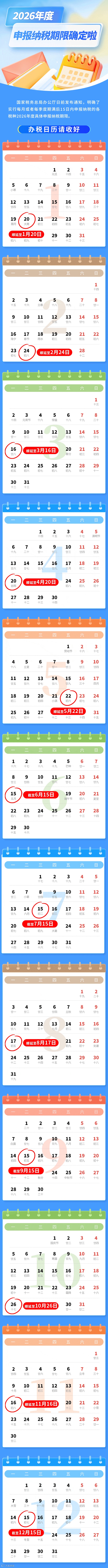“2026年度办税日历”来啦!收藏够用一年