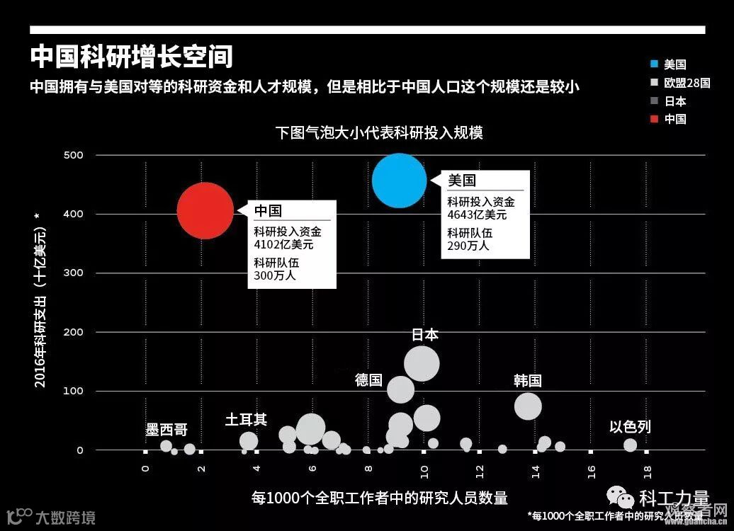 该文章称,据统计1991年到2006年期间,中国政府对科技研发的投资增长了30倍,在2009年,中国研发的支出就已经超过日本。根据经济合作与发展组织(Organization for Economic Cooperation and Development))预计,到2019年,中国的科研支出就将超越美国。