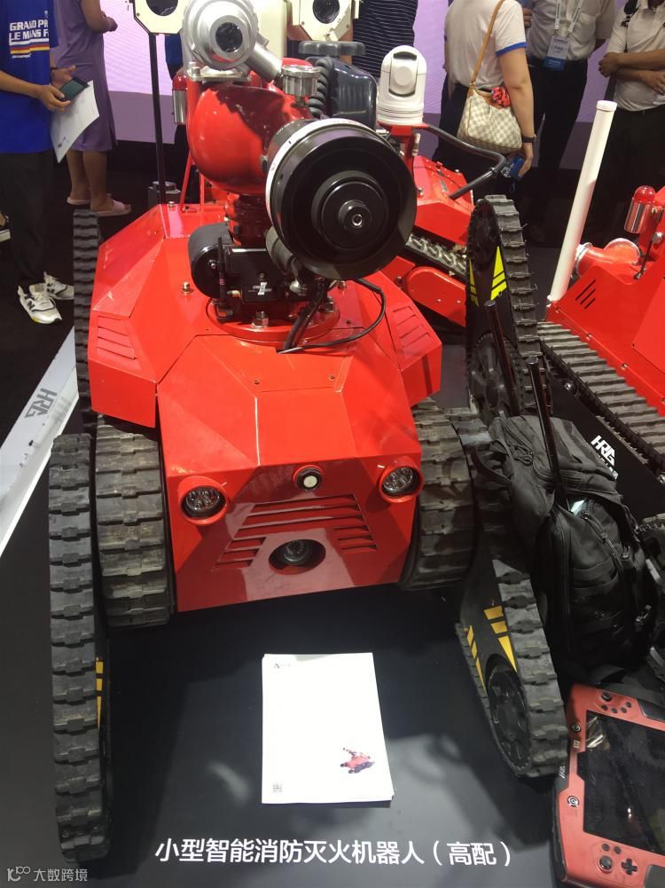 您能猜到这款小小的,像坦克一样的小家伙是干嘛的吗?这是小型智能消防(灭火)机器人(高配),虽然我体态比较小,但我优点可不少,我可以防水防尘降温,我的速度分高低两档还可以爬楼梯,原地转弯也轻而易举,更重要的是在一些狭小的空间、地下管廊、隧道等人们不易接近的火灾现场我也可以进行作业。