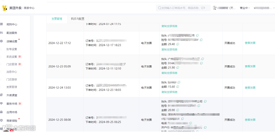 在美团外卖平台上,发票管理是商家运营中不可或缺的一环,同时也常常伴随着诸多挑战:信息收集繁琐、金额不符问题频发以及发票推送不够及时等。针对这些问题,百旺金穗云特别推出了专为美团外卖平台设计的发票管理解决方案,无需复杂对接,即可让发票处理变得简单而智能,为商家和消费者提供便捷、高效且安全的服务体验。