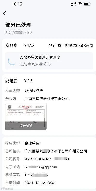 抬头提交后系统将自动完成发票的生成与上传,并即时将电子发票发送至消费者的邮箱或手机,这一流程不仅免去了人工收集发票信息的麻烦,还支持商家在百旺金穗云平台上实时监控每日及每月的发票开具情况,为店铺的财务管理提供有力支持。
