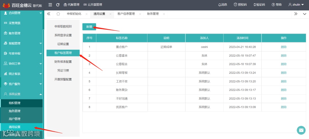 点击系统设置--通用设置--客户标签管理--新增。