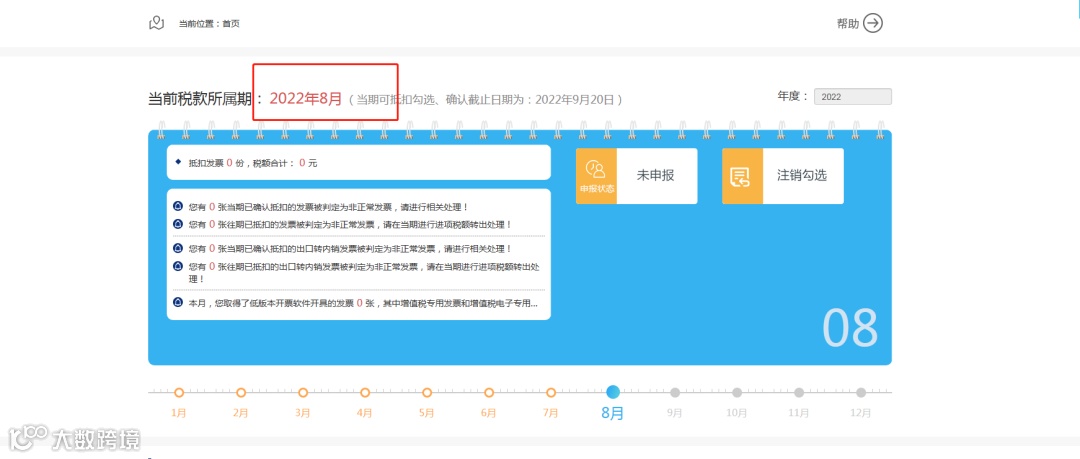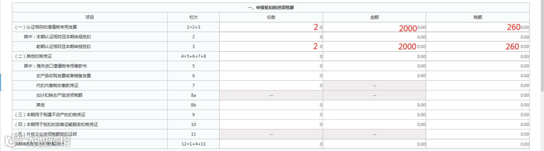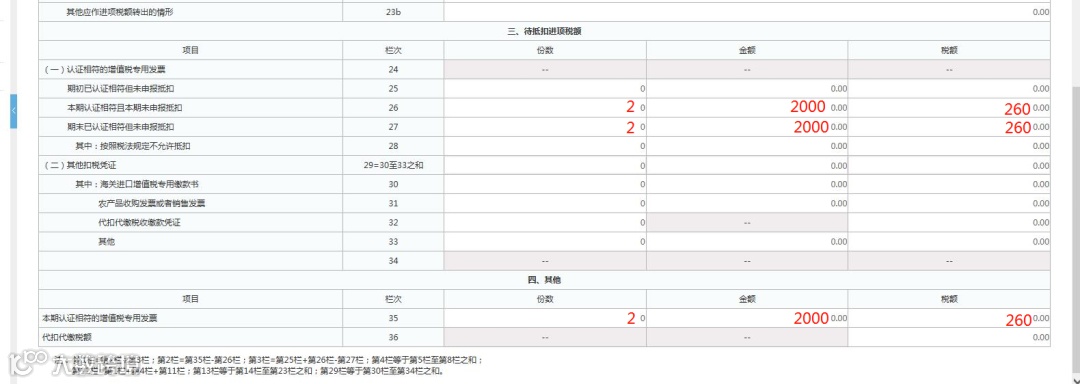 A公司辅导期为2022年8-10月份。8月份收入为0,取得认证相符的2份金额为2000元、税额为260元的增值税专用发票。