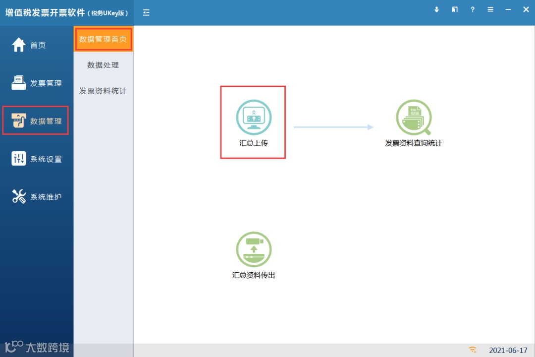 第一步:点击【数据管理】-【数据管理首页】-【汇总上传】模板