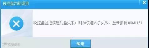 3. 反写提示:税控盘监控信息写盘失败:时钟校准因子失效,重新报税(09d118)?