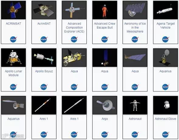 NASA 3D模型数据库的截图(图片来源:NASA)
