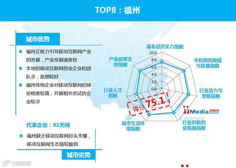 一、城市经济实力、资本实力、区位优势、移动互联网人才及移动互联网发展水平是影响排名的主要因素。