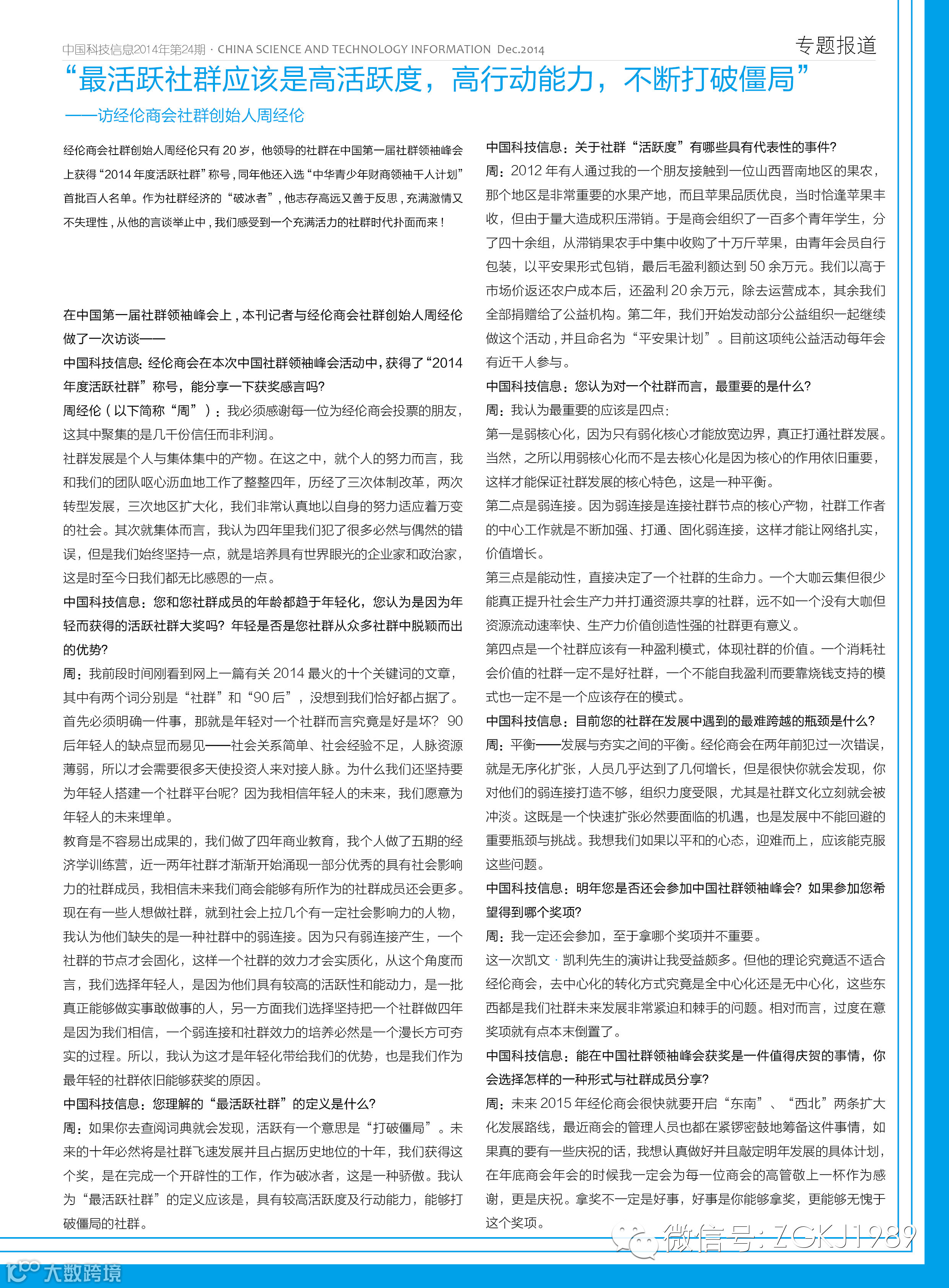 本专题发表于《中国科技信息》杂志2014年12月15日刊,购刊请登录微信公众平台首页或直接与编辑部联系。购刊电话010-68003059