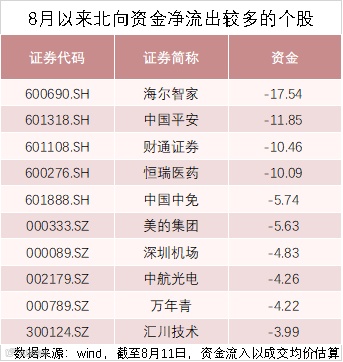 从北向资金的动向看,尽管7月份整体净流入仍有103.92亿元,但8月以来净流入态势并不明显,相比前期的大进大出,或进入“观望期”。Wind数据显示,截至8月12日,北向资金本月以来净流出21.32亿元。