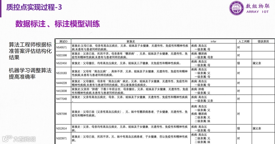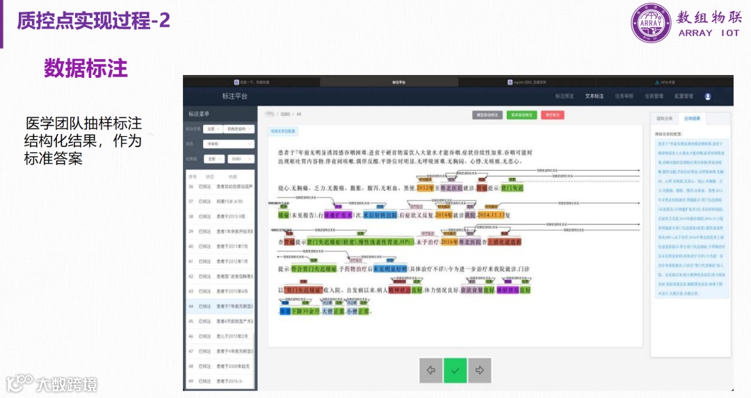 通过人工智能结合人工标注的方式,将非结构化的病历文本转化为结构化的数据,以便于进行质量和控制分析。这种结构化的数据可以用于训练机器学习模型,或者直接用于医疗质量控制和改进。