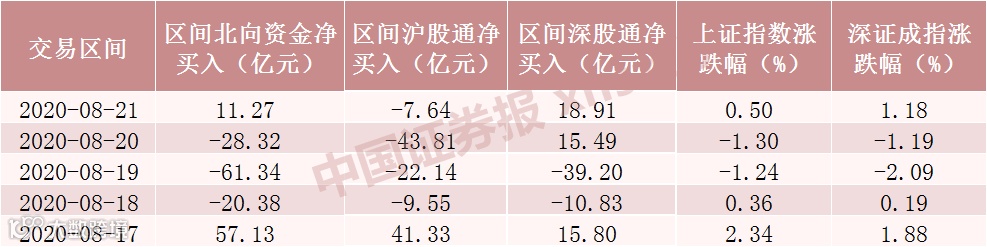 本周北向资金净流出超40亿元,但深股通资金出现小幅净流入,北向资金调仓动作明显。具体来看,Choice数据显示,8月17日北向资金净流入57.13亿元,18日净流出20.38亿元,19日净流出61.34亿元,20日净流出28.32亿元,21日净流入11.27亿元。可以看到,本周北向资金的流向与大盘变动几乎同步,在8月17日和21日市场普遍上涨之时出现净流入,在8月18日-20日市场调整之时出现净流出。