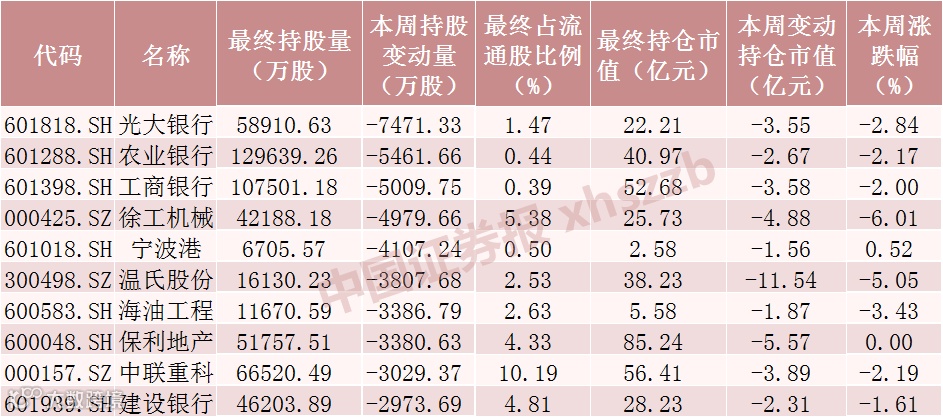 Choice数据显示,截至9月4日,北向资金持仓总市值为1.98万亿元。本周北向资金共计减仓888只股票,对其中54只股票的减仓股数超过1000万股。减仓股数最多的光大银行被减仓7471.33万股,此外农业银行、工商银行被减仓超5000万股,减仓股数前三的个股均为银行股。