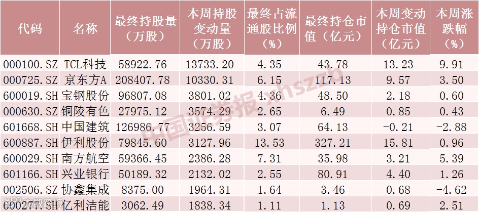 北向资金本周净流出超220亿元的情况下,仍加仓不少股票。Choice数据显示,本周北向资金共计加仓582只股票,对其中35只股票的加仓股数超过1000万股。加仓股数最多的TCL科技被加仓1.37亿股,京东方A被加仓1.03亿股,“面板双雄”本周均被北向资金加仓超1亿股。此外,宝钢股份、铜陵有色、中国建筑、伊利股份被加仓超3000万股。