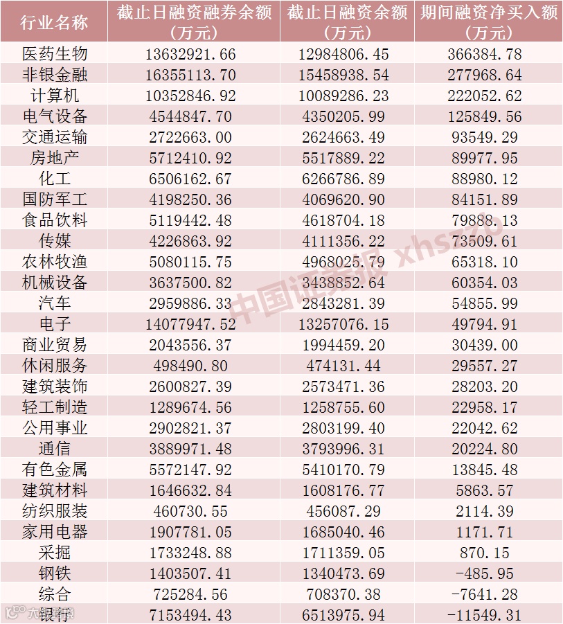 从行业板块情况来看,Choice数据显示,截至9月3日,本周前四个交易日,申万一级28个行业中,有25个行业融资余额增加,融资余额净买入金额前三的行业分别为医药生物股、非银金融、计算机行业,净买入金额分别为36.64亿元、27.80亿元、22.21亿元;融资余额净卖出的三个行业分别为银行、综合、钢铁行业,净卖出金额分别为1.15亿元、0.76亿元、0.05亿元。