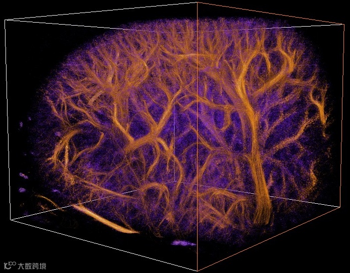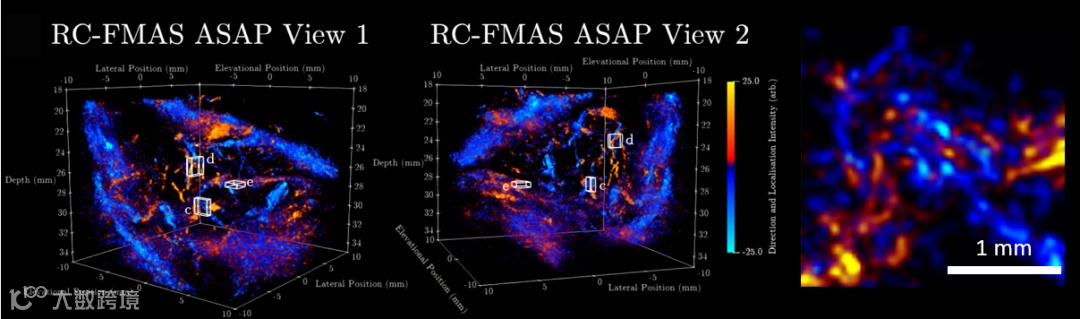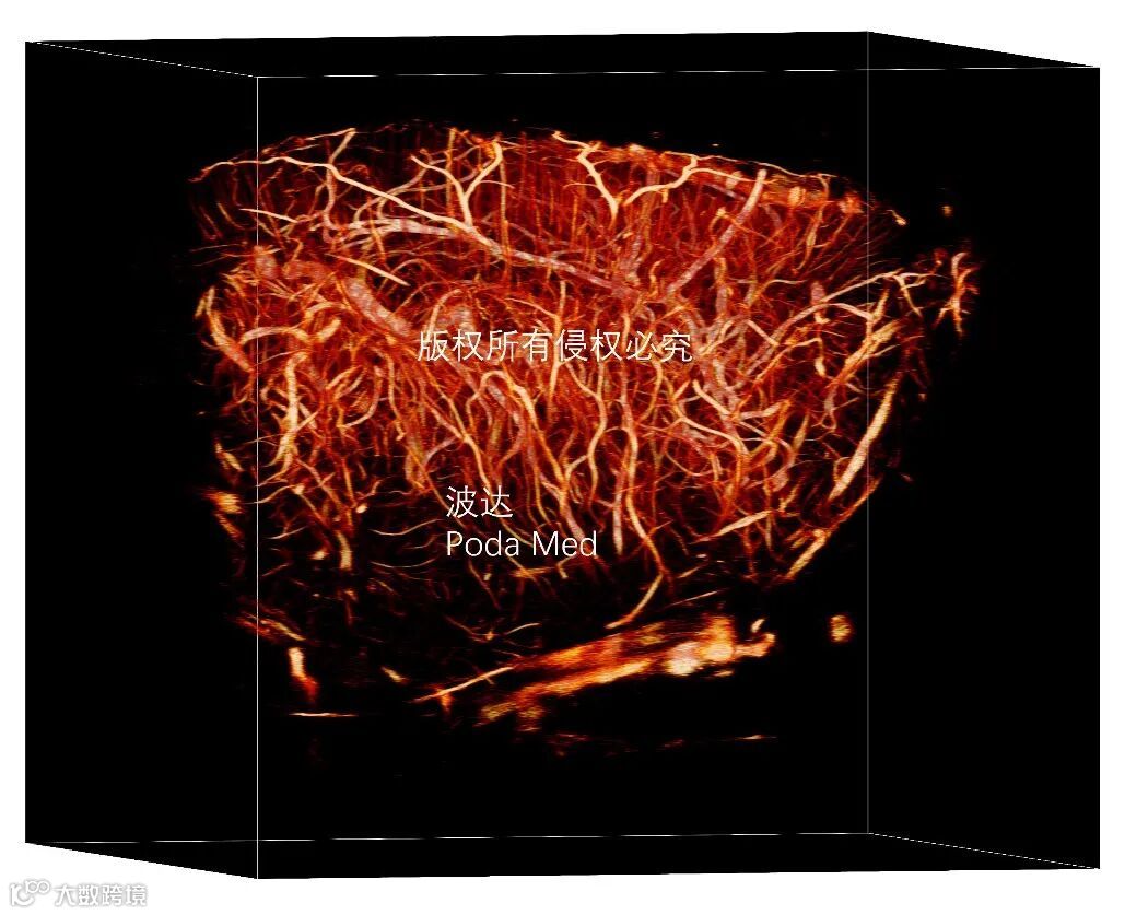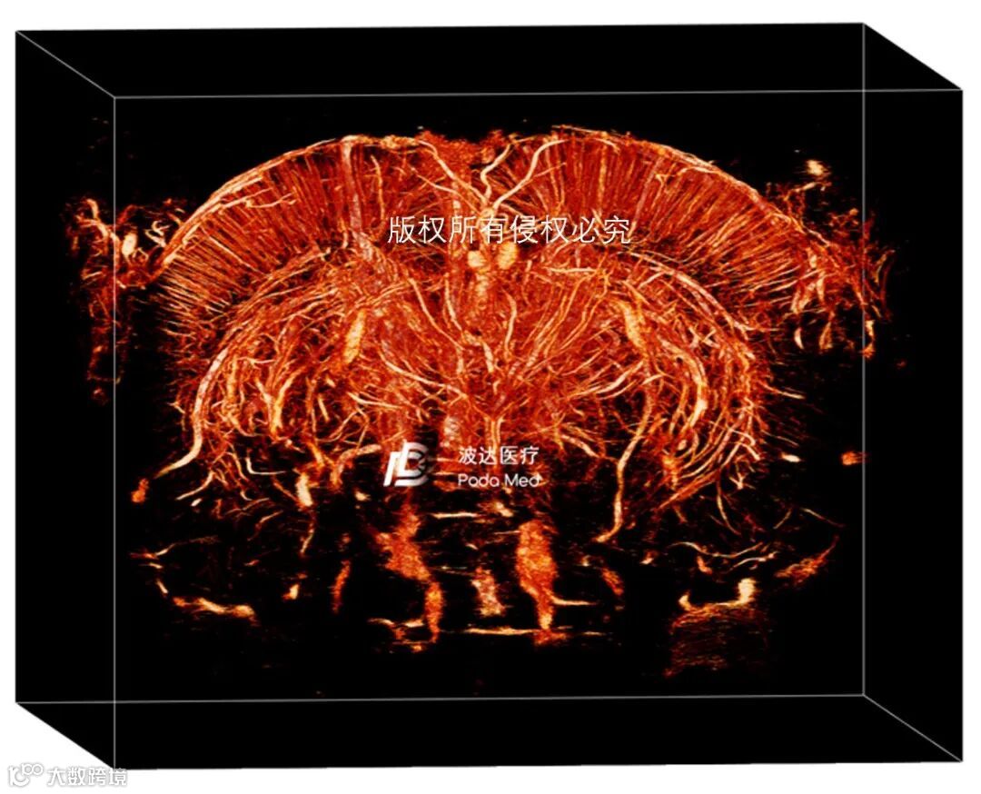 下图是PODA波达RCA三维超声成像探头的兔脑血流超分辨显微成像结果: