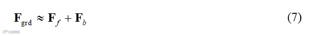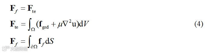 热梯度力就替代Fte就成为散度定理中的体力。光热冲击之后,由于热梯度力被应力项及时响应,热梯度力不发挥驱动作用。近似后的散度定理式(7)表明,内张力Fb来源于(积分后的)光热梯度力Fgrd。类比于前驱汽车,Fgrd相当于汽车发动机直接传递发挥效果的力,Fb相当于汽车前半驱动部分对后半从动部分的有效牵引力,Ff则是汽车轮胎承受的摩擦力。