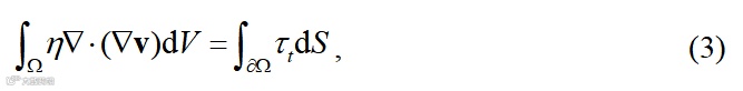 是流体中的粘滞力,en是单位外法矢,Ω是积分区域,∂Ω是Ω边界。τt 作用在界面上应当是面力,但在式(2)中是体力形式,和作用在整个物体的惯性项ρ(v·∇)v有相同表现形式,类比于这样的处理,研究人员提出了体力−面力统一原理。在固体中,也同样有这样的关系,并且固体力学对应物理量是应力。应力是个张量,具有更高阶数学形式,它来源于压强,具有面力性质,又在空间上分布,具有体力形式。