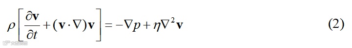 其中ρ 是密度, v 是速度,η是动态粘度,p 是压力,η∇2v 是粘性项,ρ(v·∇)v 是惯性项,方程忽略了外力。
