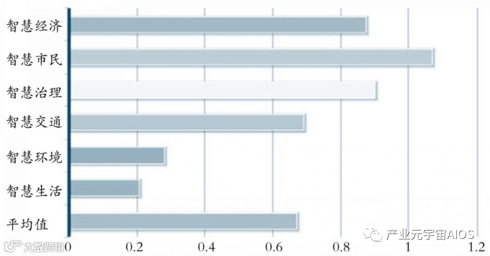 6项智慧城市属性分别为智慧经济、智慧市民、智慧治理、智慧交通、智慧环境和智慧生活。