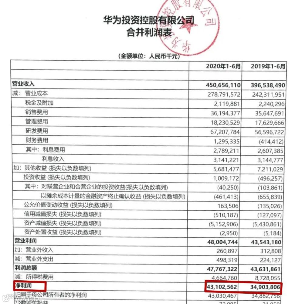 8月28日,华为投资控股有限公司(简称华为)在上海清算所发布上半年财报。2020年上半年,华为实现营业收入4506.56亿元,同比增长13.65%;净利润431.03亿元,同比增长23.49%。这也意味着,华为上半年日赚近2.37亿元。