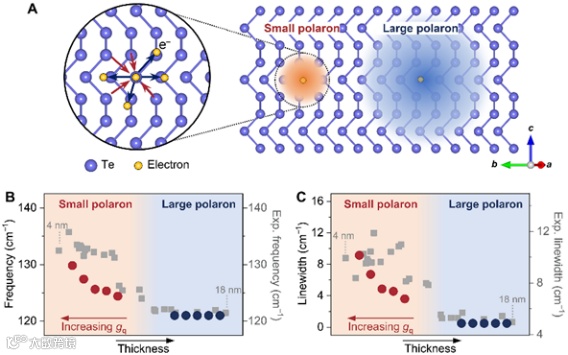这项研究工作,从几个新角度认识低维材料中极化子的形成和性质,为调控低维材料中的极化子及其性质提供了新思路和方法,有助于设计新型高效电子器件和新型传感器以及碲烯在先进功能器件中的应用。
