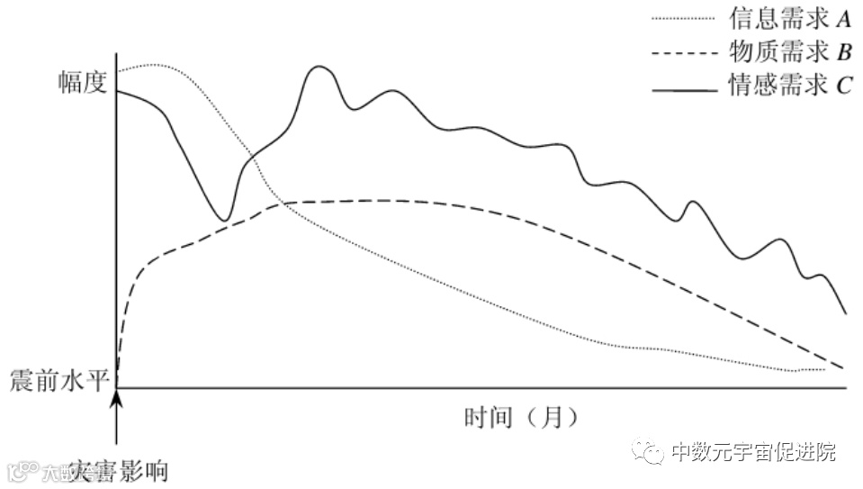 情感需求(同情、支持、帮助、计划)在灾害发生时处于一个峰值,在灾害后迅速下降,然后在觉醒阶段这种需求又迅速上升,呈现波动状,如图2-5中的C曲线所示。