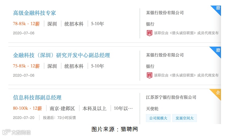 而金融科技人才的高薪也令人羡慕。有机构开出15万元-20万元月薪,多家银行相关岗位年薪也高达百万。
