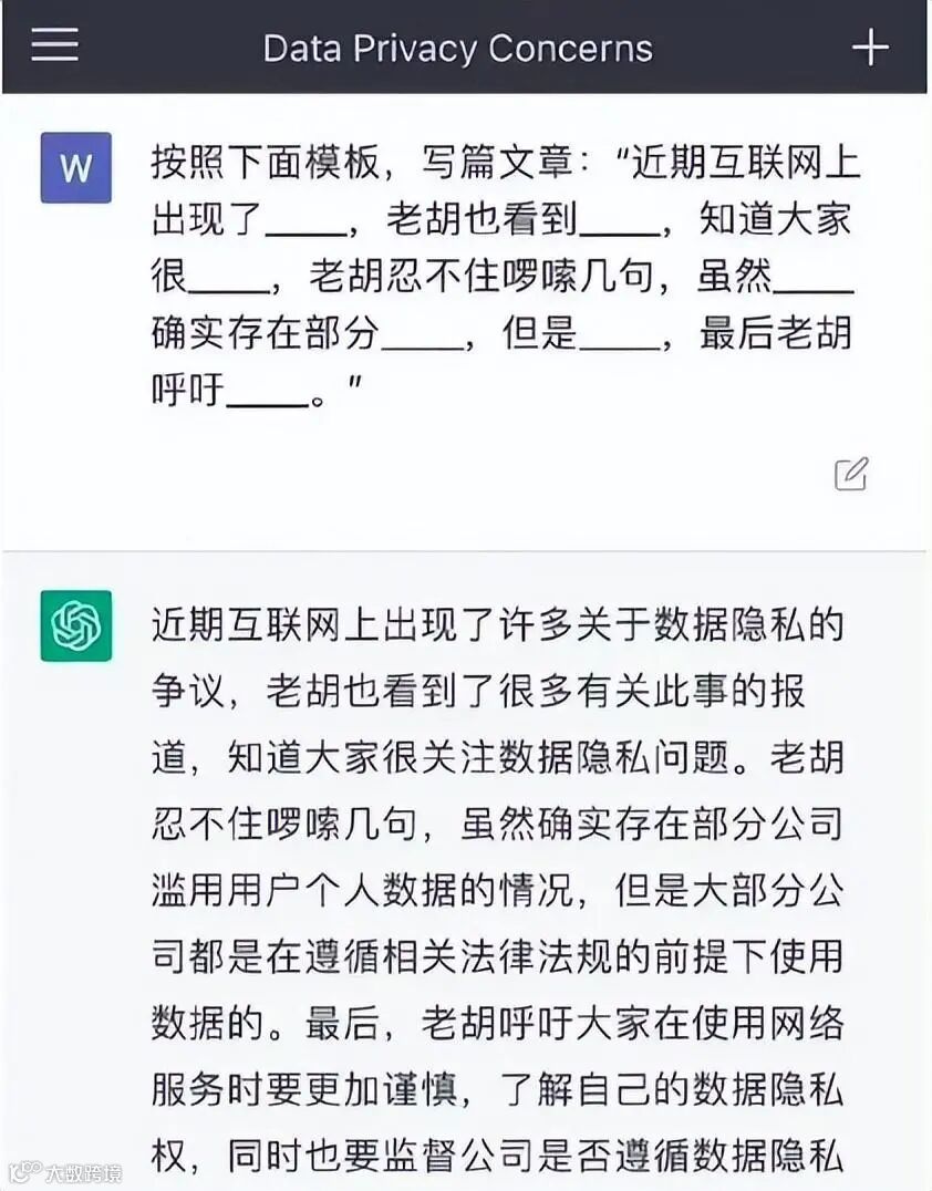 最知名的段子或许就要属ChatGPT模仿胡锡进写文章了,过去老胡的文体一直以来被各种网友所模仿,但如今随着ChatGPT的出现,它能够更为精准地模仿老胡的文体,甚至表达的比老胡更好。