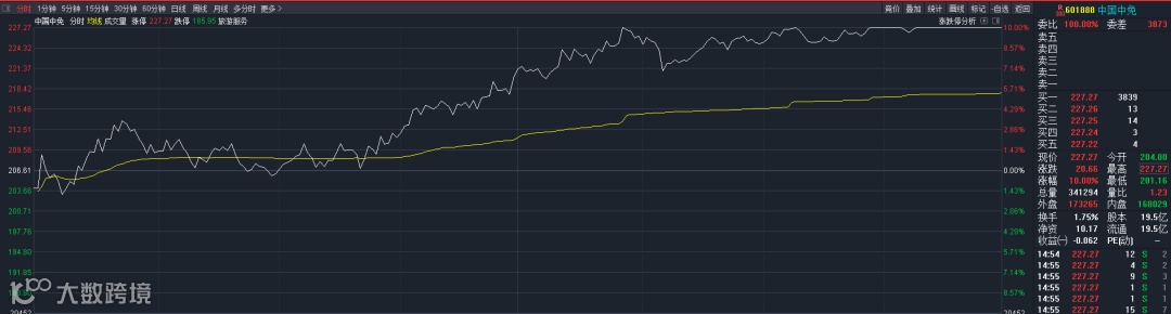 中国中免今日分时图 来源:通达信