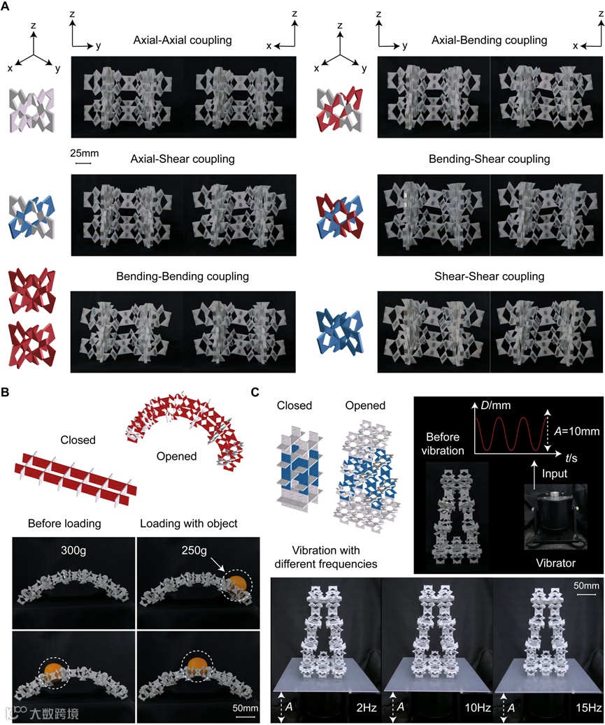 视频1 具备不同泊松比模块组合实现的多种变形模式