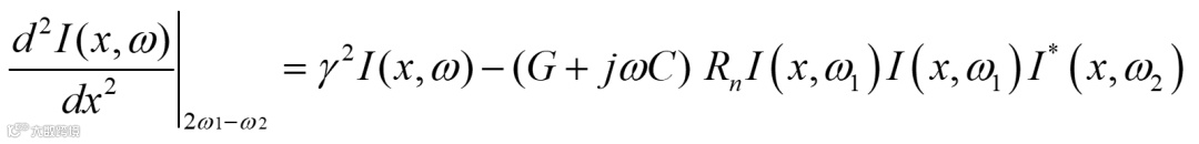 上式表明,根据线性电流I(x,ω1)和I(x,ω2)的数值解,便可获得频率为2ω1-ω2的非线性电流分布。线性电流解的求解与上述过程类似,仅忽略了表达式中的非线性电压源项。这是因为线性信号水平远大于非线性信号,非线性信号对线性部分的贡献可以忽略,经过自洽求解后也证实非线性信号对线性部分的贡献很小。