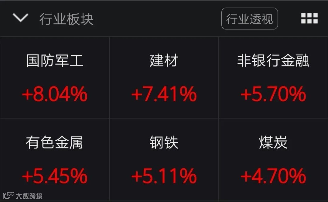 今日大基建板块领涨。