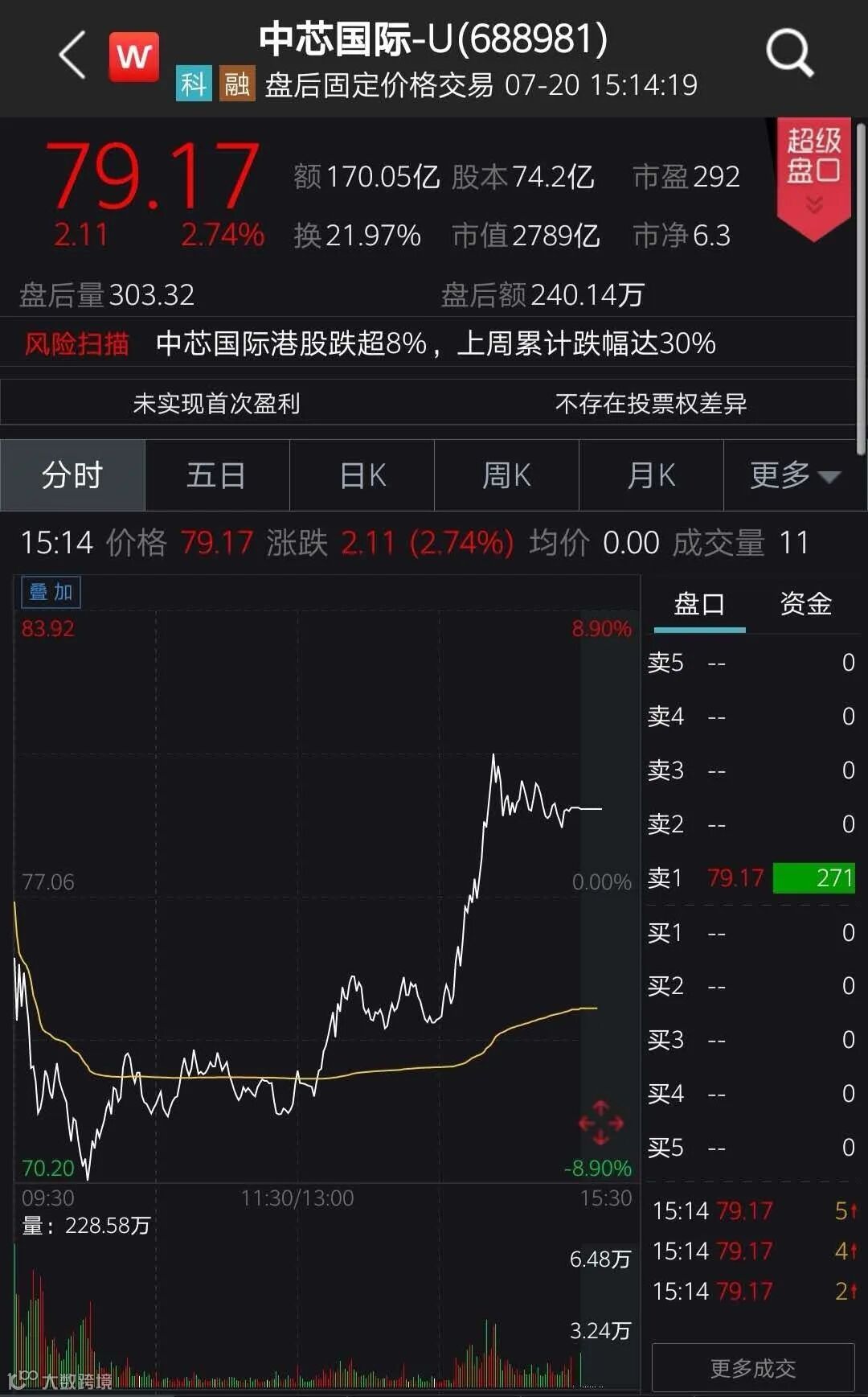 值得一提的是,7月16日上市的中芯国际全天宽幅震荡,至收盘涨2.74%,报79.17元,全天成交170.05亿元,换手率21.9%。中芯国际止跌企稳,带领科技股出现反弹潮。
