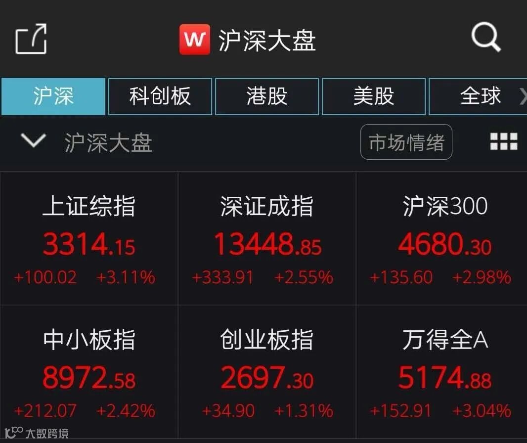 截至收盘,上证指数涨3.11%,深证成指涨2.55%,创业板指涨1.31%。