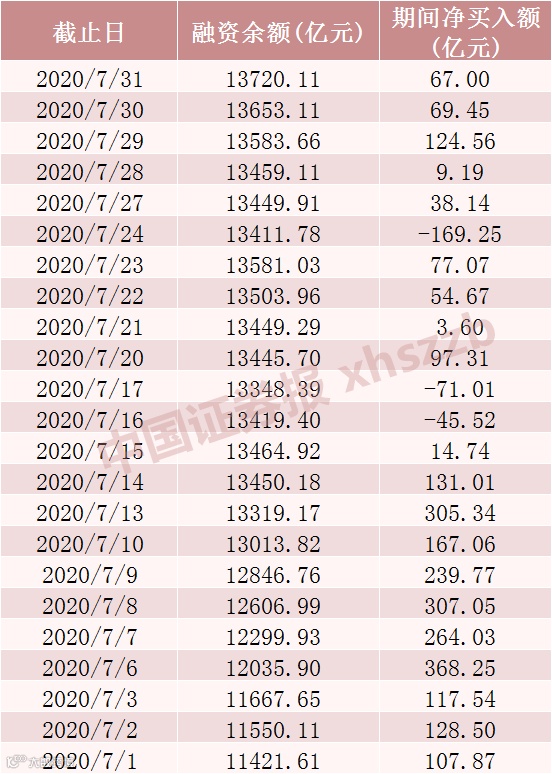 7月融资余额情况