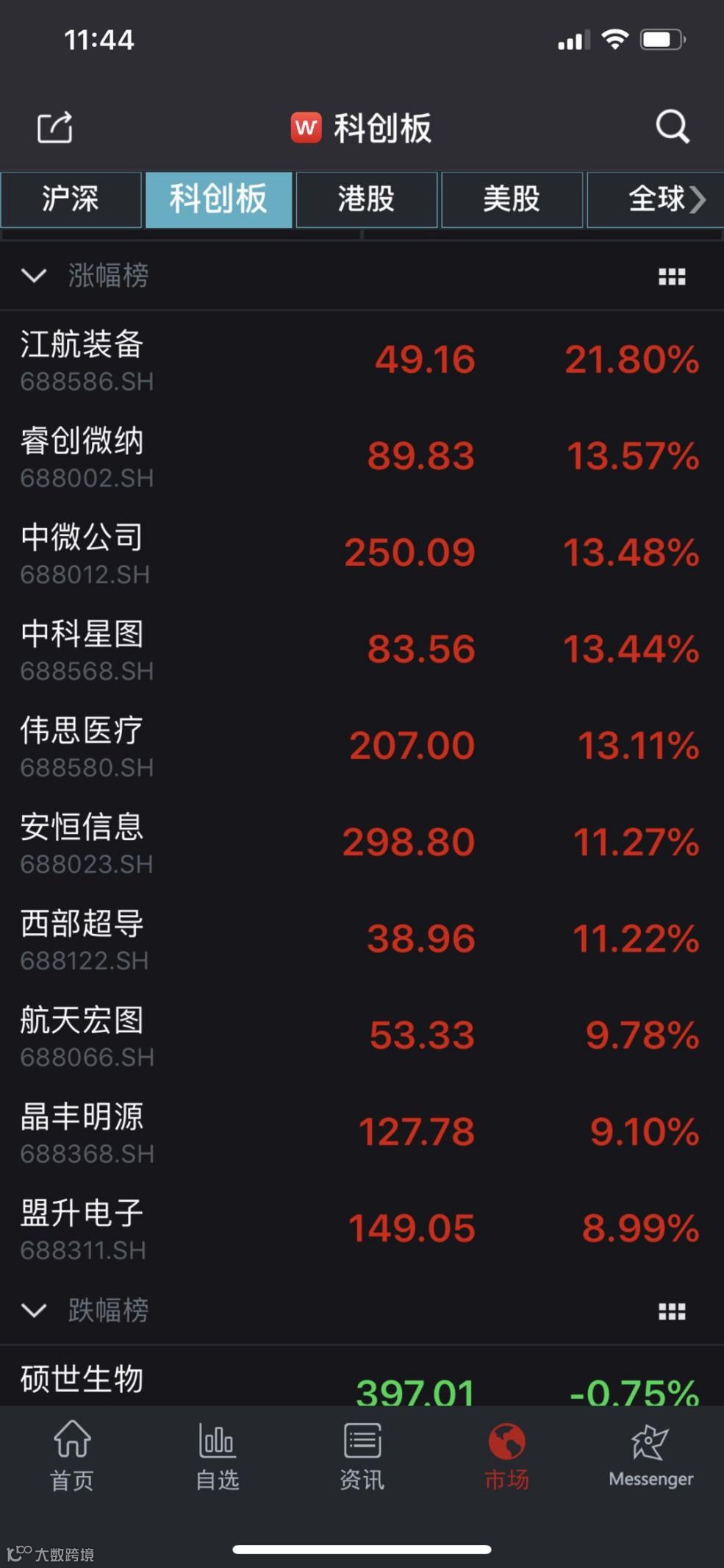 此外,科创50指数涨近6%,科创板143只个股仅有硕世生物、君实生物-U、美迪西、震有科技、石头科技这5只个股下跌,其他138只个股全线上涨,江航装备涨逾20%,睿创微纳、中微公司、中科星图、伟思医疗、安恒信息、西部超导涨逾10%。