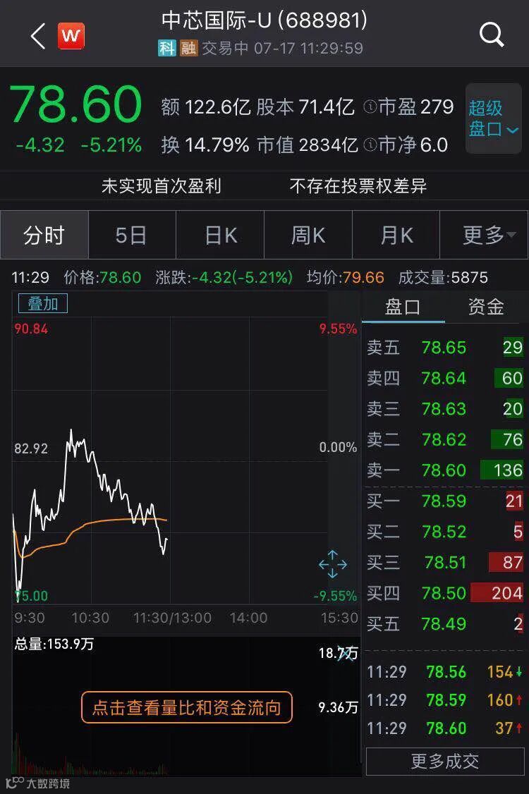 中芯国际昨日登陆科创板,收盘大涨201.97%。国信证券研报指出,中芯国际比贵州茅台更珍贵。