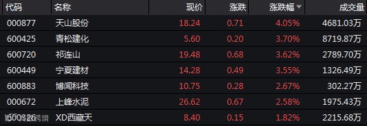首先,水泥、工程机械等周期品种出现上涨,如Wind西部水泥概念指数涨幅居前,板块内的天山股份、祁连山、青松建化、宁夏建材等表现亮眼。
