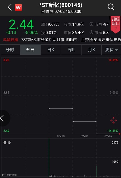 *ST新亿复牌后连续三个一字跌停