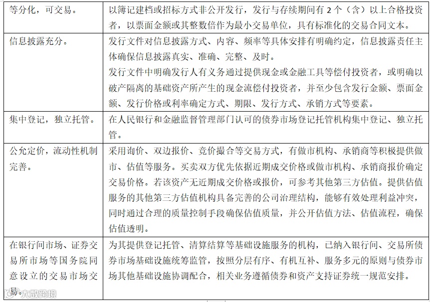 2.征求意见稿:发行文件中明确发行人有义务通过提供现金或金融工具等偿付投资者,或以破产隔离的基础资产所产生的现金流偿付投资者,并至少包含发行金额、票面金额、发行价格或利率确定方式、期限、发行方式、承销方式等要素。